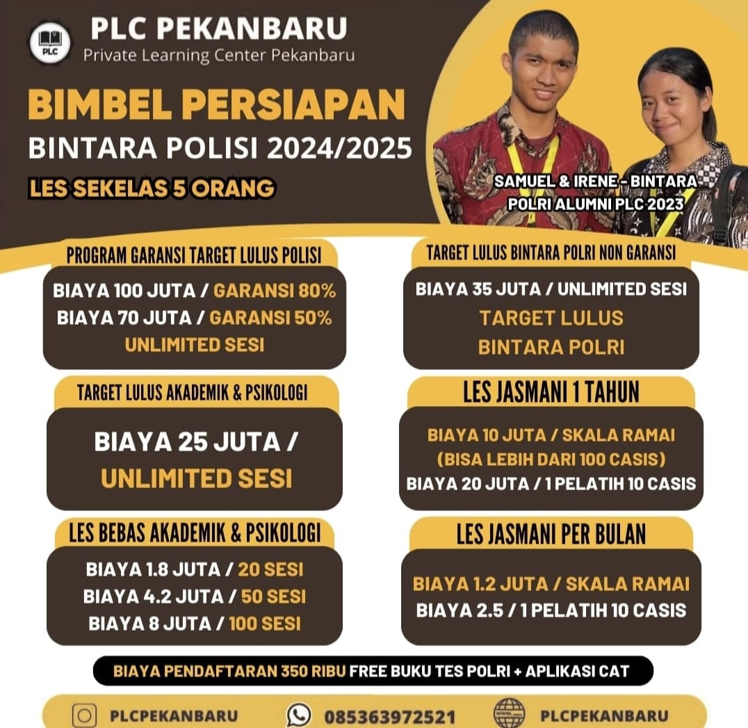BIMBEL BINTARA POLISI TERBAIK DI PEKANBARU DENGAN RATUSAN SISWA PLC LULUS MENJADI POLISI SETIAP TAHUNNYA !
